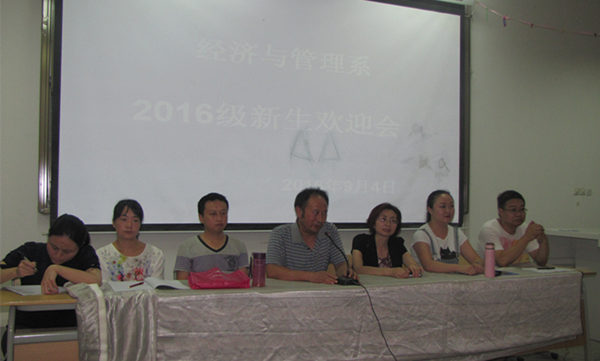 2016年9月4日晚,汉中职业技术学院经济与管理系在1号教学楼113教室召开了2016级新生欢迎会。经管系系主任李永宏、党总支书记赖秋萍、系综合办主任吕相征、2016级班主任及全体新生参加了大会。欢迎会由该系学管办副主任戴文娟主持。